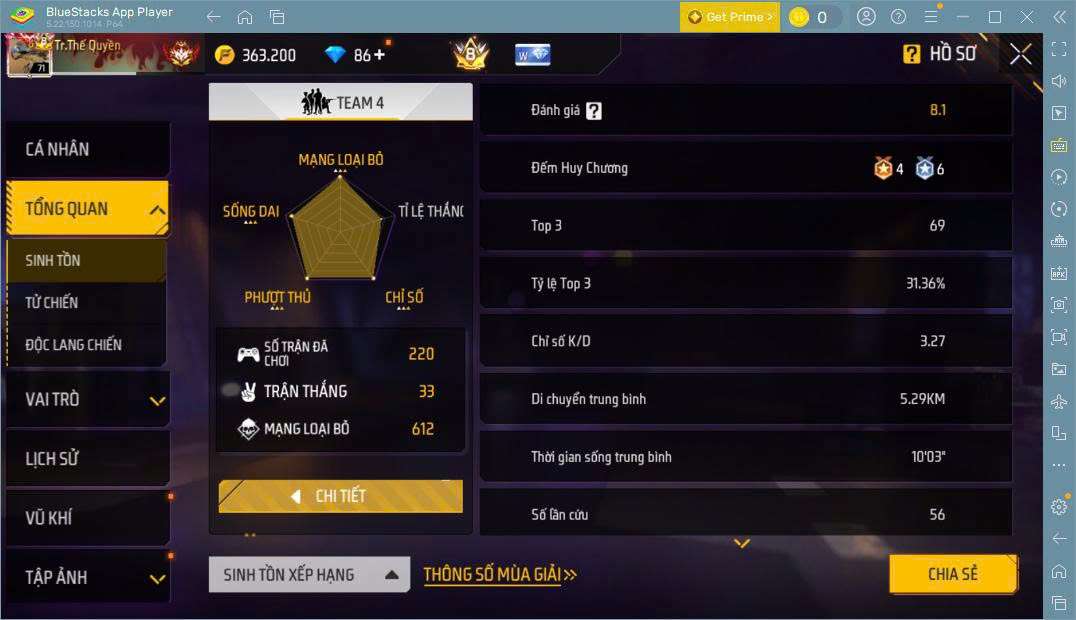 Hình ảnh chi tiết của tài khoản