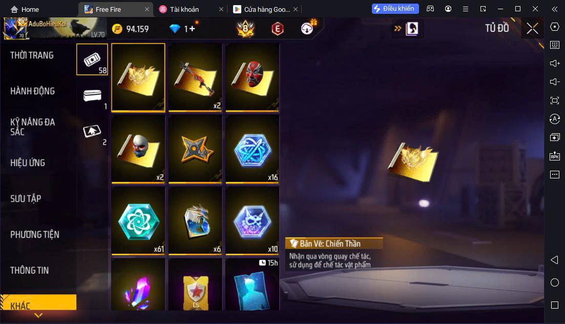 Vòng Quay Vũ Khí Huyền Thoại 9k