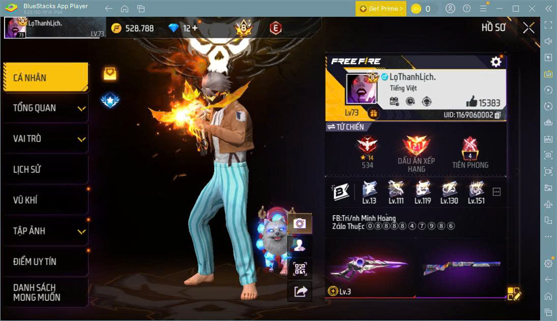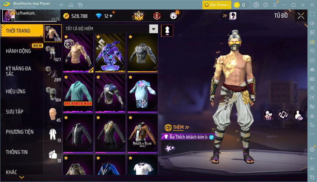 Hình ảnh chi tiết của tài khoản