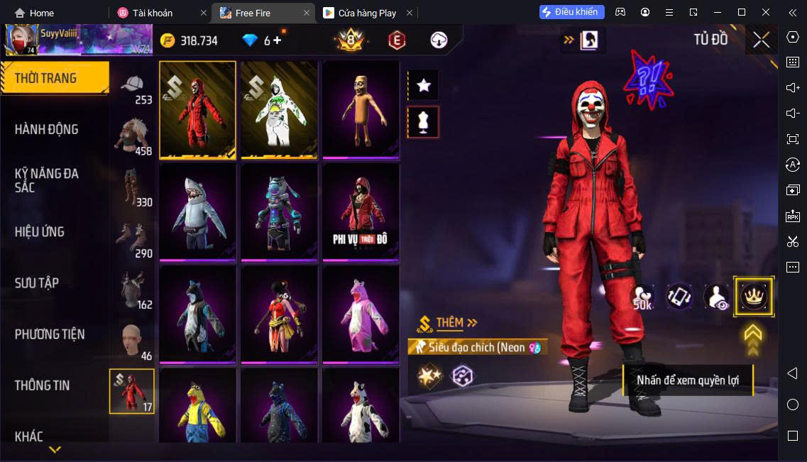 Hình ảnh chi tiết của tài khoản