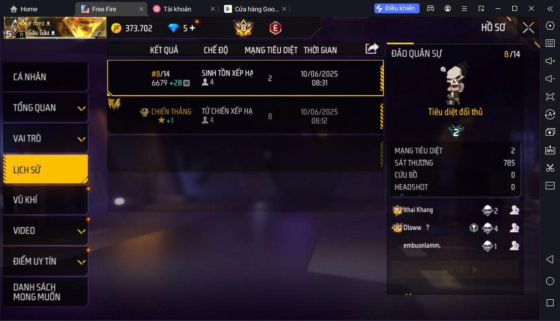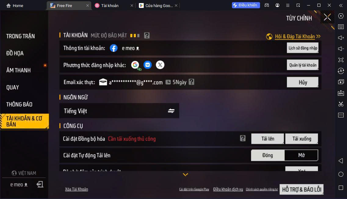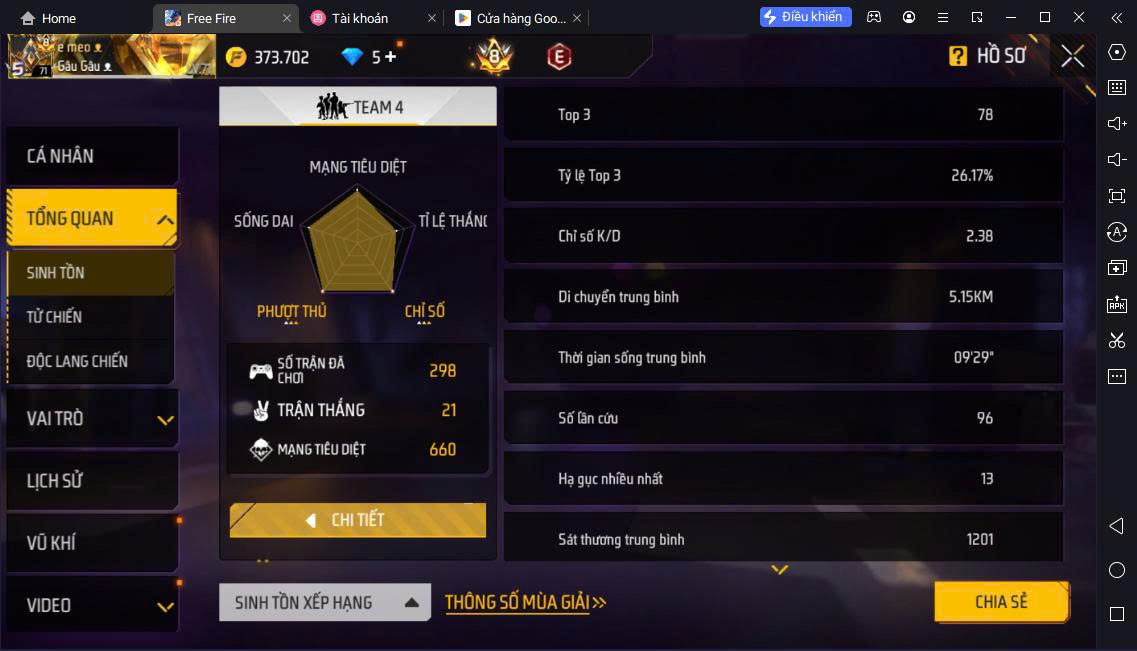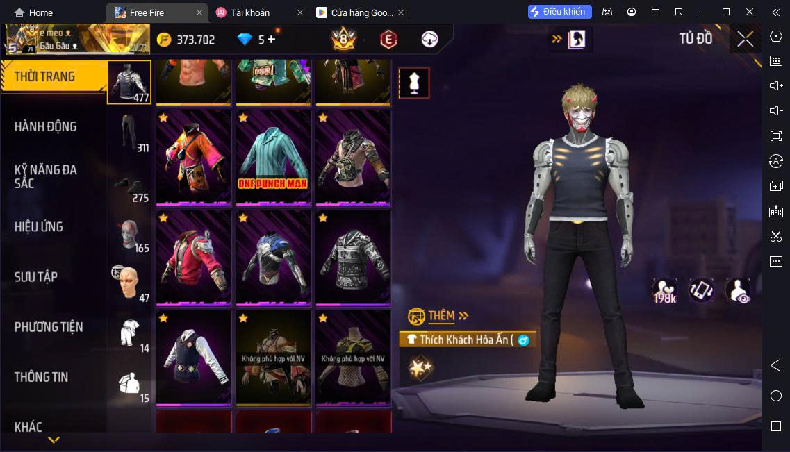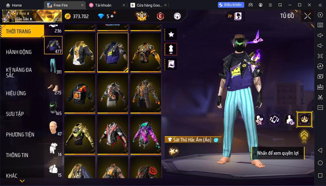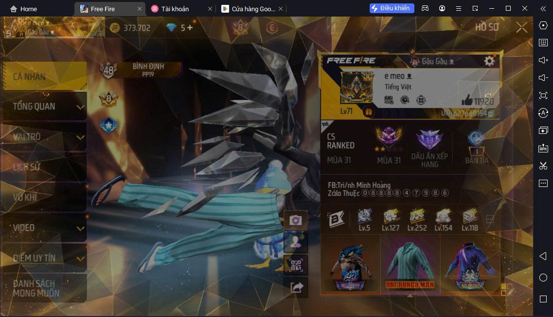 Hình ảnh chi tiết của tài khoản